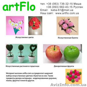 Интернет-магазин artflo.com.ua предлагает к продаже недорогие искусственные цветы оптом. Также большой выбор предметов декора интерьера, фрукты, лианы, вазы, моделированные деревья, искусственные цветы в горшочке и многое другое. Регулярные распродажи и Скидки! . Минимальный ...