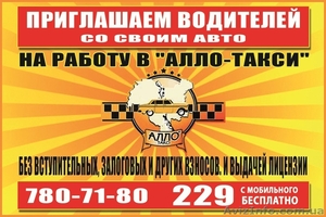 "Алло-Такси" в Харькове! Надежно! Доступно! Качественно! Самые низкие тарифы для самых дорогих клиентов! Наилучшие условия для работы водителей! Компания входит в состав Автохолдинга. Телефоны: 780-10-40 (многоканальный), 229 колбек - с мобильного бесплатно. Доп. информация: ...